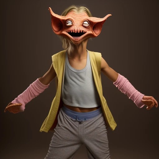 panties on face, jar jar binks, dancing, vest, 1boy, solo, jar jar binks, pants,