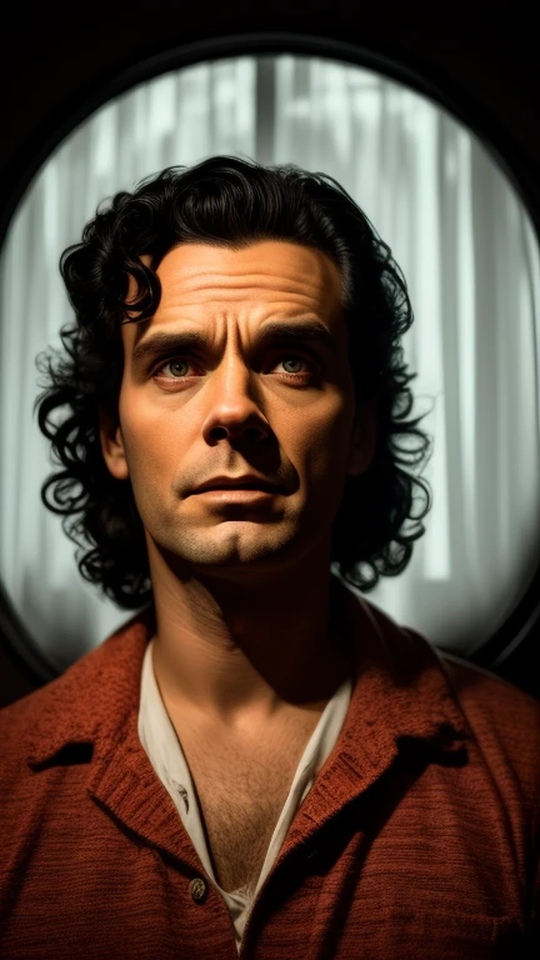 Handsome horror movie fan, Portraiture, Pencil, Pop art, High resolution, Sharp, Midnight black, Candlelight, Film noir, Norman Rockwell