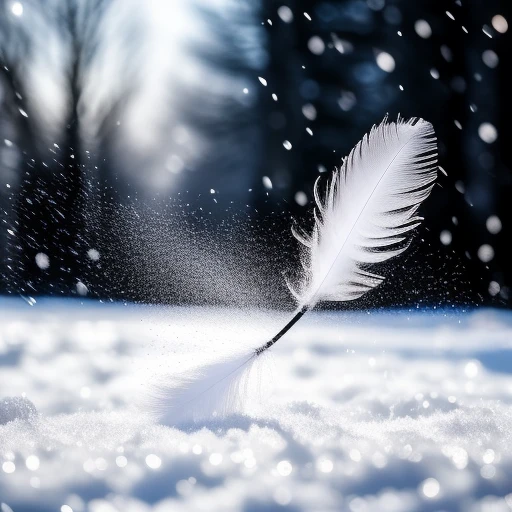 black and white feather falling down among a snow fall