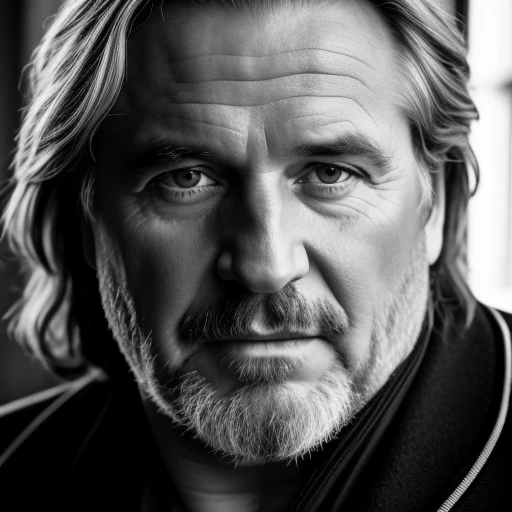 [[[Extremely-detailed and (((in-focus))) photorealistic portrait of a Gerard Depardieu]]] ((black and white image)), 1980 scene, 3/4 view
