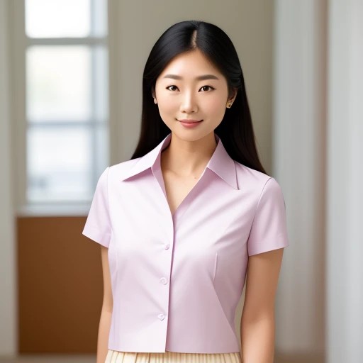 midshot portrait, natural light, an attractive korean woman in her 20's, Preppy Style, Office, taken using a Canon EOS R camera with a 60mm f/4 lens, f/2.2 aperture, shutter speed 1/200s, ISO 300, Hyper Realistic Photography, Hyperdetail, Ultrahd, Color Correction, hdr, color grading, 8k --ar 4:5 --q 2