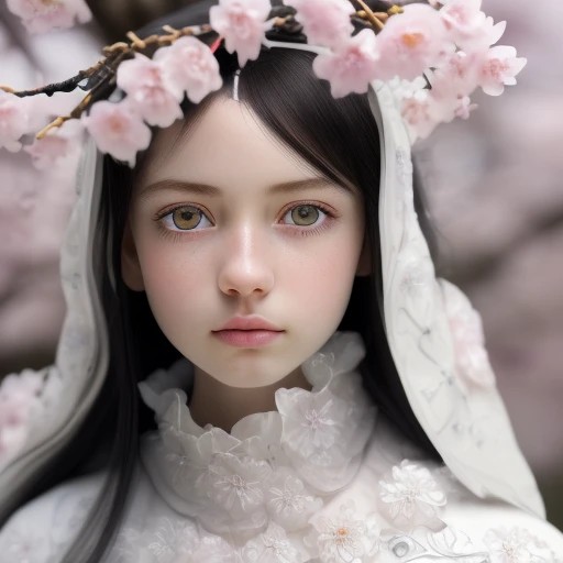 (Highest picture quality), (Master's work), (ultra-detailed), (Detailed eye description:1.2), masterpiece,best quality,absurdres,original,extremely delicate and beautiful,beautiful detailed eyes and face, 1girl, black_hair, cherry blossom, white_clothes, looking_at_viewer, mole, pink_flower, solo,(masterpiece:1.4),(best quality:1.4), ,