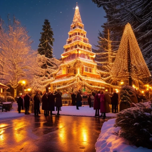 Edwardian Period Christmas Carolers and snow filled night sky ((ultra detailed)) ((detailed background)), ((highest resolution)), ((highest quality)), ((64k)), ((sharp focus)), ((3d))