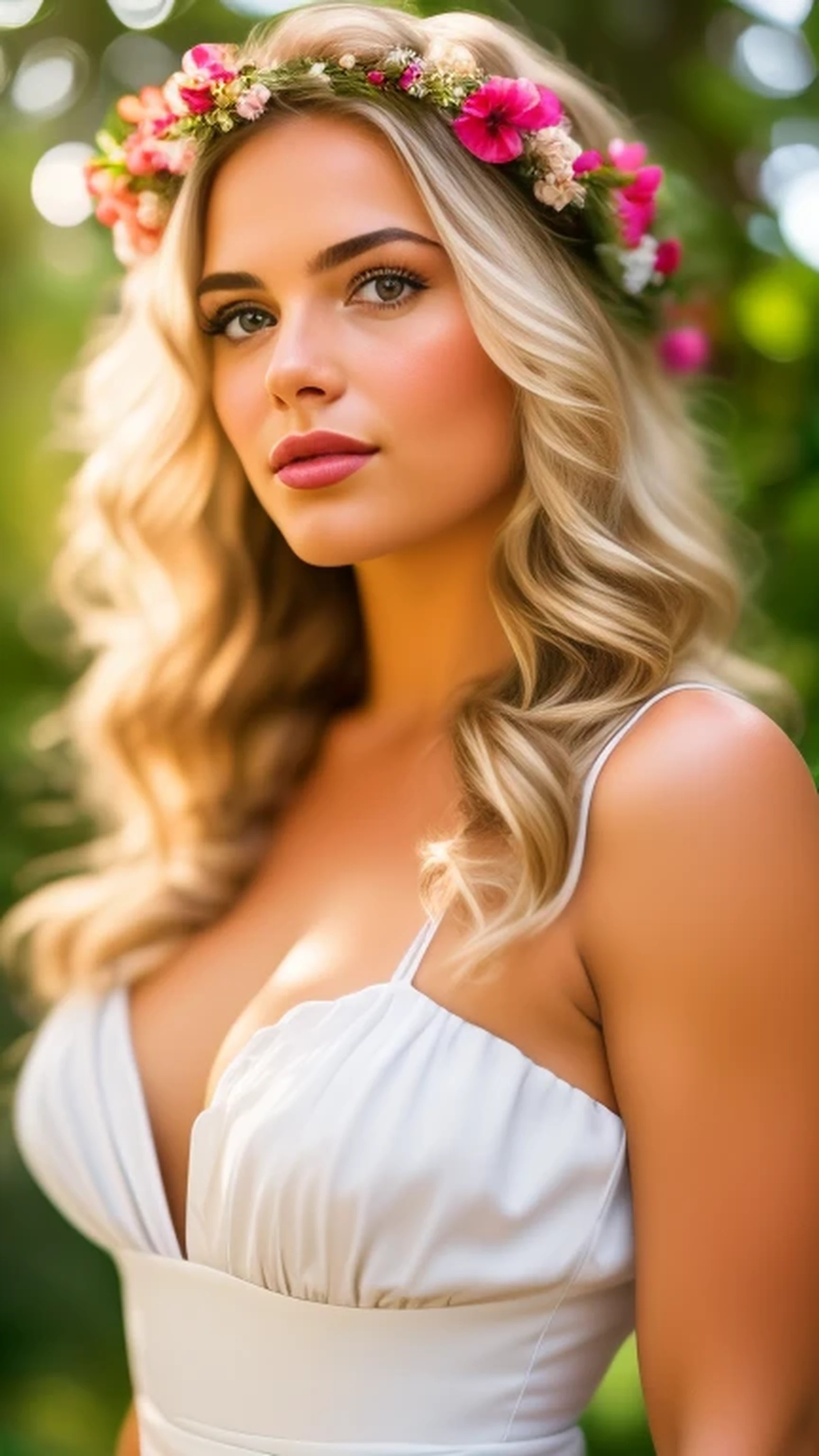 flower garland on the head, behind, woma...