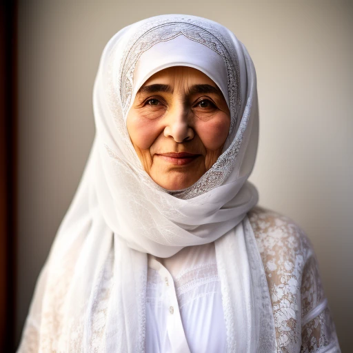 Turkish old hijab woman in white lingerie, High resolution, Natural, Realism, Photography