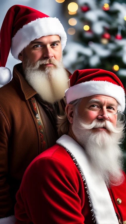 Santa Claus, sometimes referred to as Father Christmas, brings joy to children at Christmas time. Displayed with a beard and red festive hat. in 3d, ((realistic)), ((action poses)), ((detailed background)), ((detailed bodies)), ((detailed faces)), ((detailed hands)), ((highest resolution)), ((highest quality)), ((clothed))