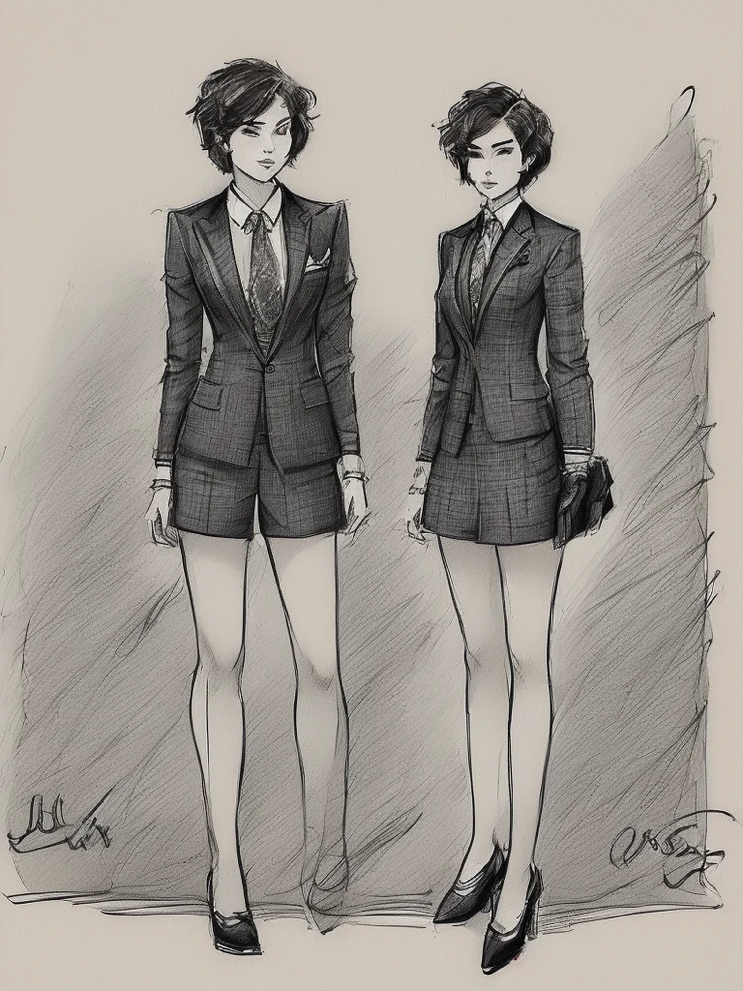 hand sketched, naked girl short hair, Ro...