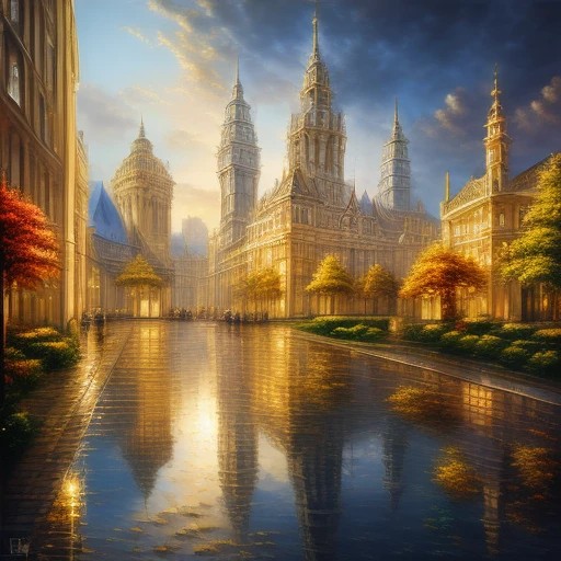 Realism, Architecture, Acrylic, High resolution, Iridescent Gold, Soft