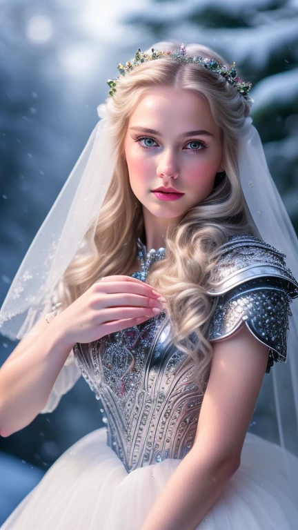 Snow White come to life. ((Photorealistic)), ((Detailed Face)), ((High Cheekbones)), ((Detailed Hands)), ((Feminine Hands)), ((Detailed Body)), ((Detailed Armor)), ((Action Poses)), ((8k)), ((uhd))
