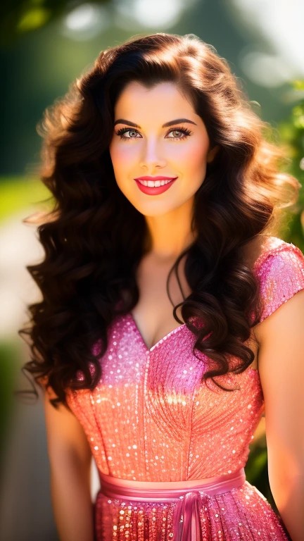 Ann Miller was characterized by her dark, voluminous hair, often styled in classic Hollywood waves, a bright and engaging smile, and expressive eyes. She was also famous for her long legs, which were emphasized in her dance performances. Her talent in tap dancing and her energetic on-screen presence made her a memorable figure in the entertainment industry.