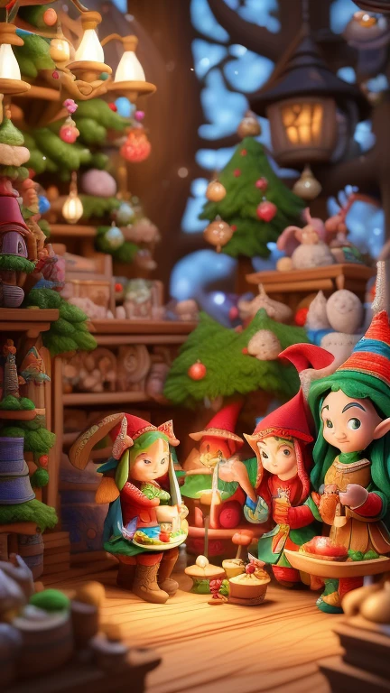 The Elves Making Toys Cartoon, ((ultra detailed)) ((detailed material)), ((detailed background)), ((highest resolution)), ((highest quality)), ((64k)), ((sharp focus)), ((3d))