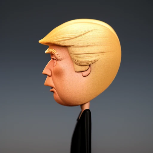 Donald Trump appearing like Pinocchio. 45 degree profile showing a very long nose.