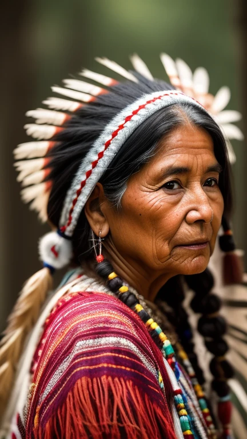 hyper-realistic photograph, native American Hopie woman in her 50's. a slight smile, side view looking away from the camera, embodying the resonance and depth of indigenous culture, in the style of photorealism, I can't believe how beautiful this is, photorealistic, shot on a Canon A7III