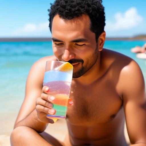 man getting a drink at the beach