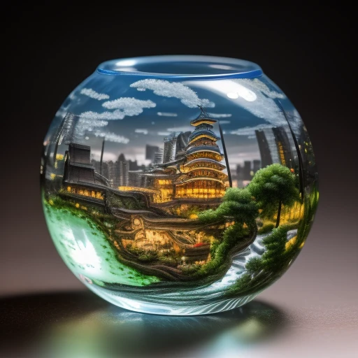 mini\(ttp\), (8k, RAW photo, best quality, masterpiece:1.2), shanghai city, , miniature, landscape, glass bowl