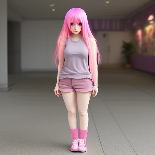 chibi, full body, , , , , pink hair,