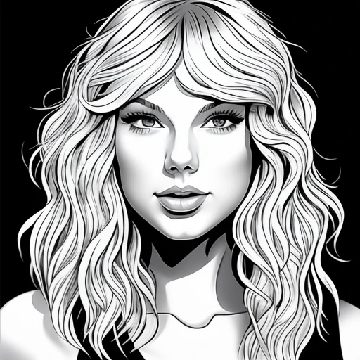 taylor swift in the style of al hirschfeld, line art, 6 ninas