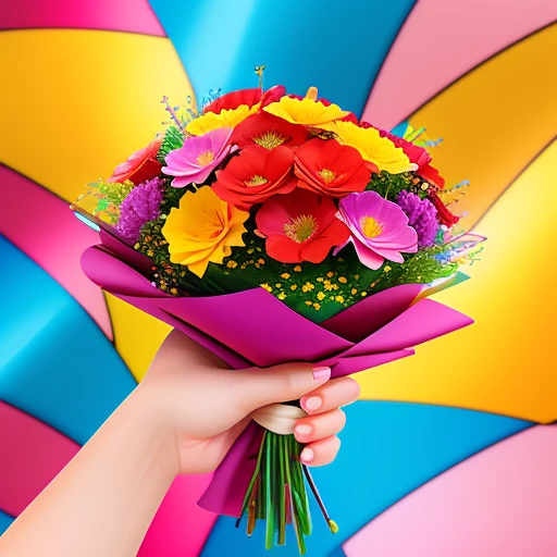 Bouquet of multi-colored flowers in the hands of young woman