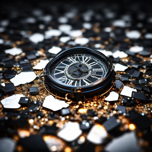 A broken clock or a shattered chain to represent breaking free from the 9-to-5 grind, Glowing, Realism, High resolution, Midnight Black