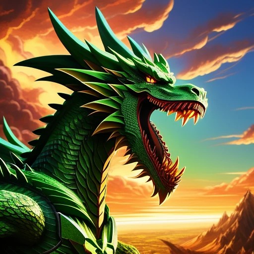 "A powerful green wooden dragon, radiati...