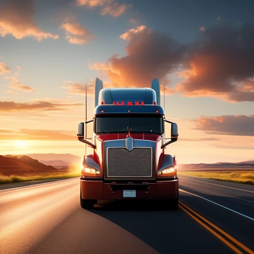 For a YouTube channel logo featuring the life of American truckers, the design encapsulates the spirit of the open road and the trucking lifestyle. The central image is a stylized semi-truck cab, rendered in bold colors of red, white, and blue to echo the American flag. The truck is depicted in motion, its wheels slightly blurred to convey movement, and set against a backdrop of a classic U.S. highway stretching into a horizon dotted with iconic landmarks like Monument Valley or a distant city skyline. Above the truck, bold, modern lettering spells out the channel’s name, with the font resembling road signage to maintain thematic consistency. Flanking the sides are subtle elements like eagle wings or stars, adding a touch of patriotic flair. The overall design is sleek and dynamic, capturing the essence of the American trucker's journey and adventure.