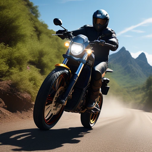 Motor biking front wheel lifting off ground ((wheelie)) and rider ((photorealistic)) ((full body)) ((action poses)) ((ultra detailed)) ((detailed faces)) ((detailed Body)) ((highest resolution)) ((highest quality)) ((64k)) ((sharp focus))