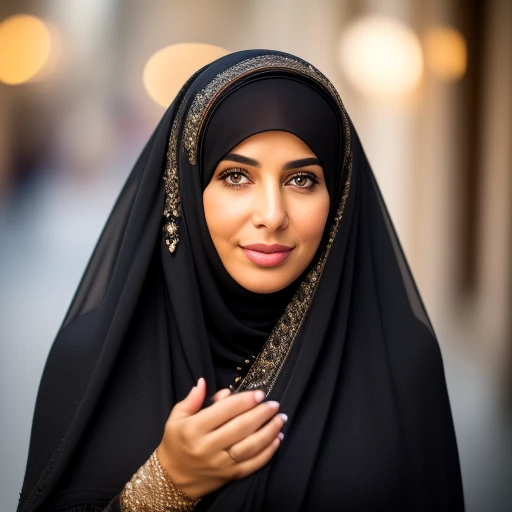 a turkish mom with black hijab and big is looking (((Photorealistic))), ((Detailed Face: 3.5)), (Detailed Hands: 1.0)),