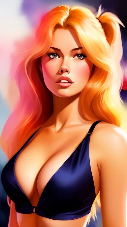 Busty sexy Brigitte Bardot profile portrait, Figurative, Watercolor, Minimalism, Rough, Midnight black, Underlit, Film noir, Frank Miller, Rough