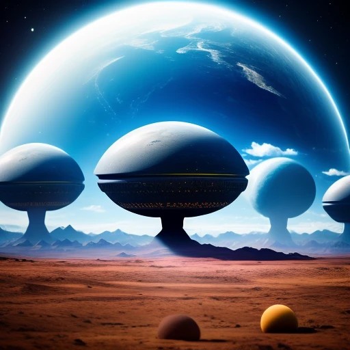 Gigantic aliens using a flat planet with a dome as toys. The focus is from space