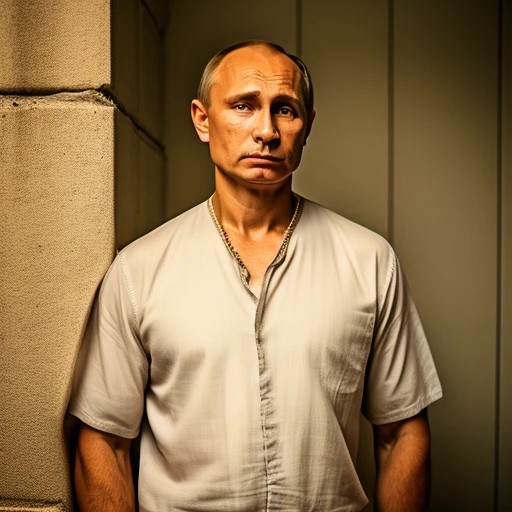 Vladimir Putin sad wearing prison clothe...