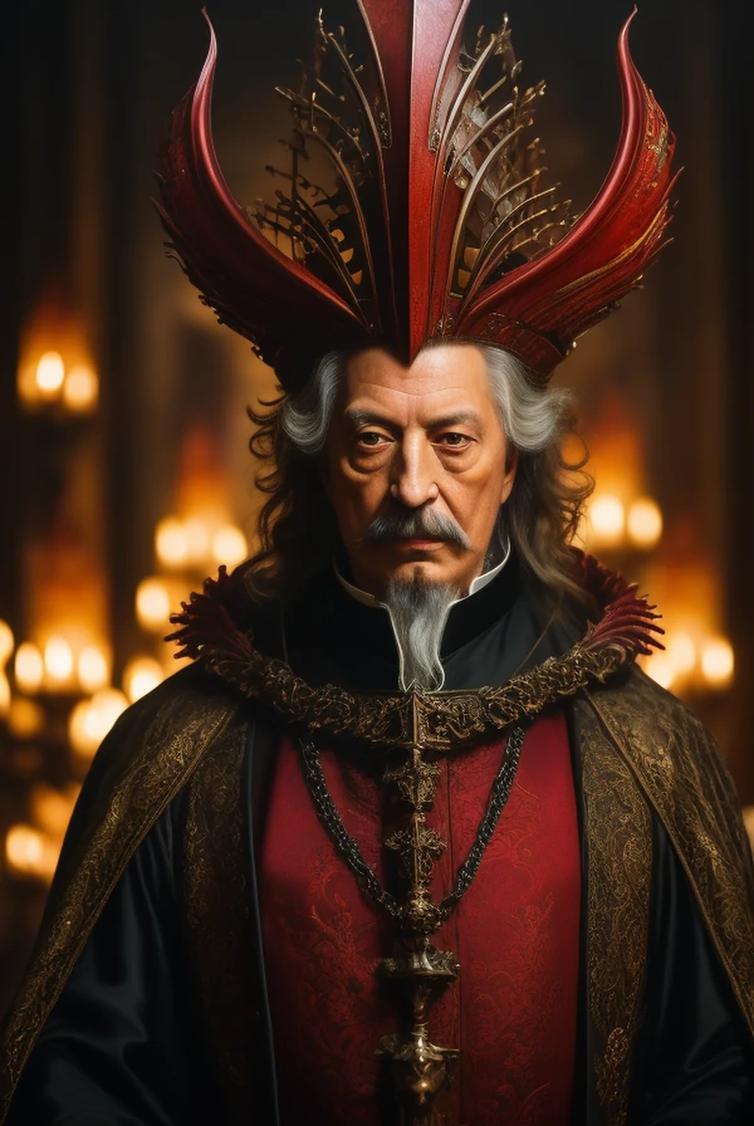 ((Portrait of Cardinal Richelieu)) ((in the biomechanical style of H.R. Giger))