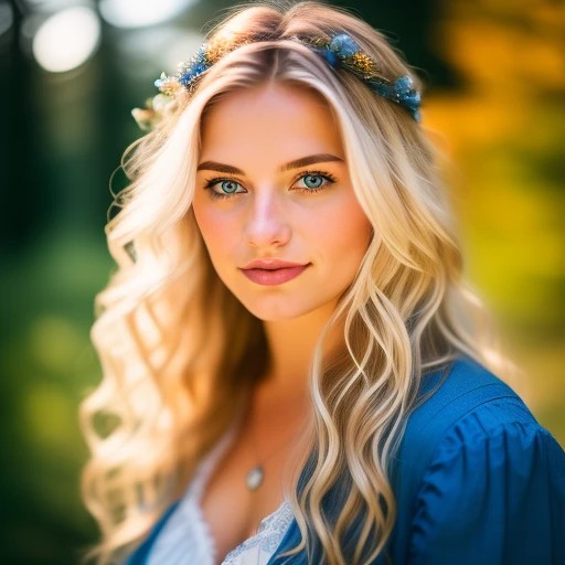 Ein typisches junges Mädchen aus Bayern, blond mit blauen Augen und geflochtenen Zöpfen.