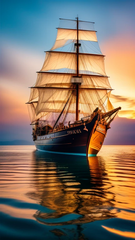 Pirate Ship ((detailed timber)), ((detailed sails)), ((detailed decks)), ((detailed bow)), ((detailed stern)),((detailed ocean)), ((detailed background)), highest resolution, highest quality, 64k, sharp focus, 3d,