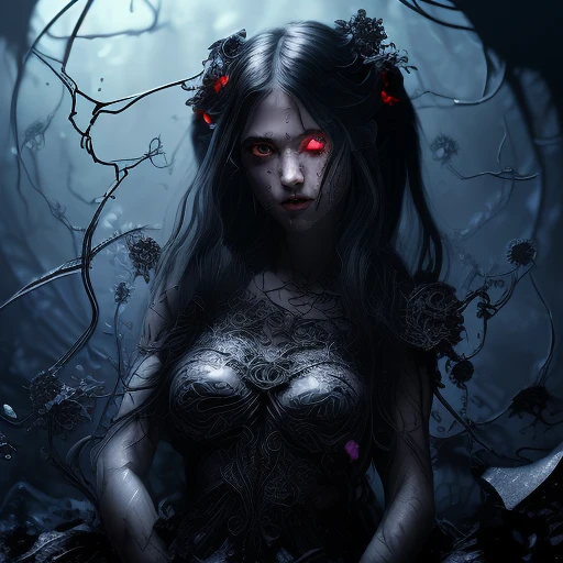 (masterpiece, best quality, ultra-detailed, best shadow), (detailed background,dark fantasy), (beautiful detailed face), high contrast, (best illumination, an extremely delicate and beautiful), ((cinematic light)), colorful, hyper detail, dramatic light, intricate details, (1 girl, solo,black hair, sharp face,low twintails,red eyes, hair between eyes,dynamic angle), blood splatter, swirling black light around the character, depth of field,black light particles,(broken glass),magic circle,