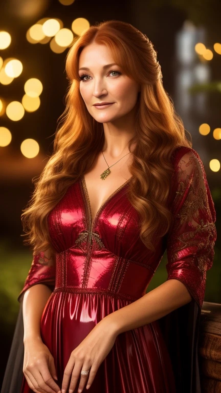 Photorealistic ((high-resolution)) of ((Jane Seymour )) in a pvc evening dress,