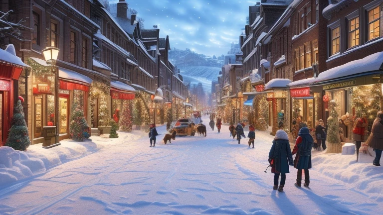 Christmas Men and Women and Boys and Girls and Dogs and Cats in Snowy Street Scene ((action poses)) ((photorealistic)) ((live action)) ((ultra detailed)) ((detailed faces)) ((detailed Body)) ((detailed background)), ((highest resolution)), ((highest quality)), ((64k)), ((sharp focus)), ((3d))