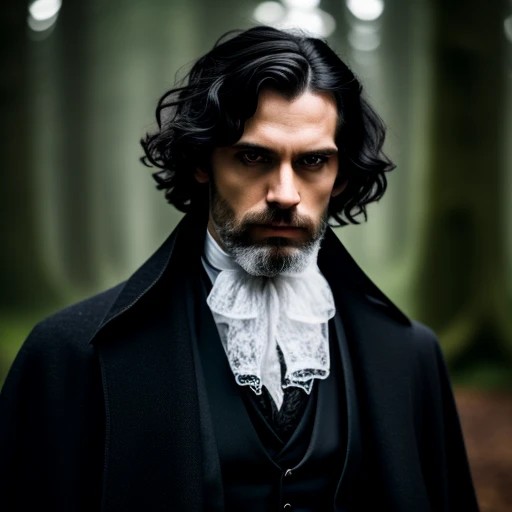 Victorian era gothic man, black hair, pa...