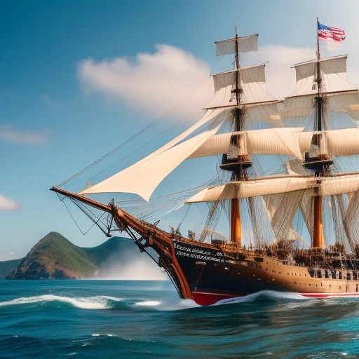 Man O'War Ship - (Battle) ((detailed timber)), ((detailed sails)), ((detailed decks)), ((detailed bow)), ((detailed stern)), ((detailed ocean)), ((detailed cannon)), ((detailed background)), highest resolution, highest quality, 64k, sharp focus, 3d,