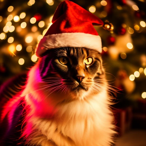 Santa Claus rides a big black cat