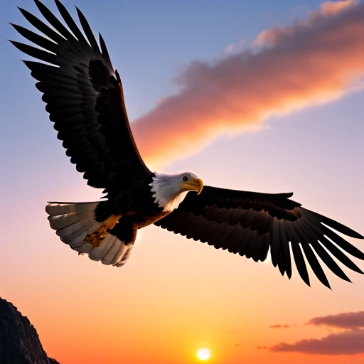 cartoon like eagle flying beside sunset