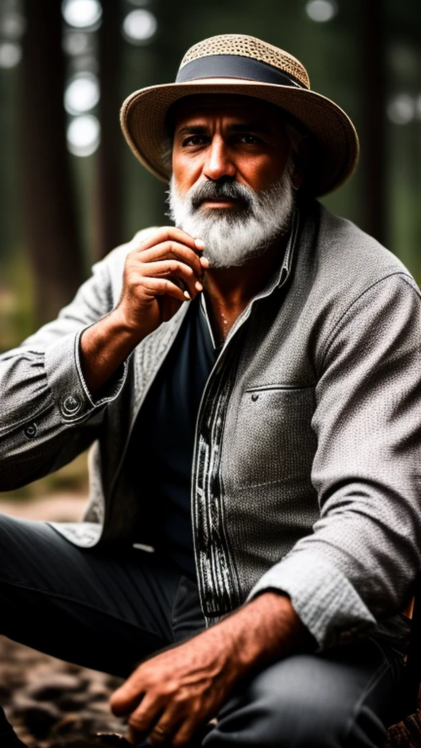 1905 scene, ((black and white image)), 3/4 view, Gypsy man,50-years old, near campfire, full length, high resolution