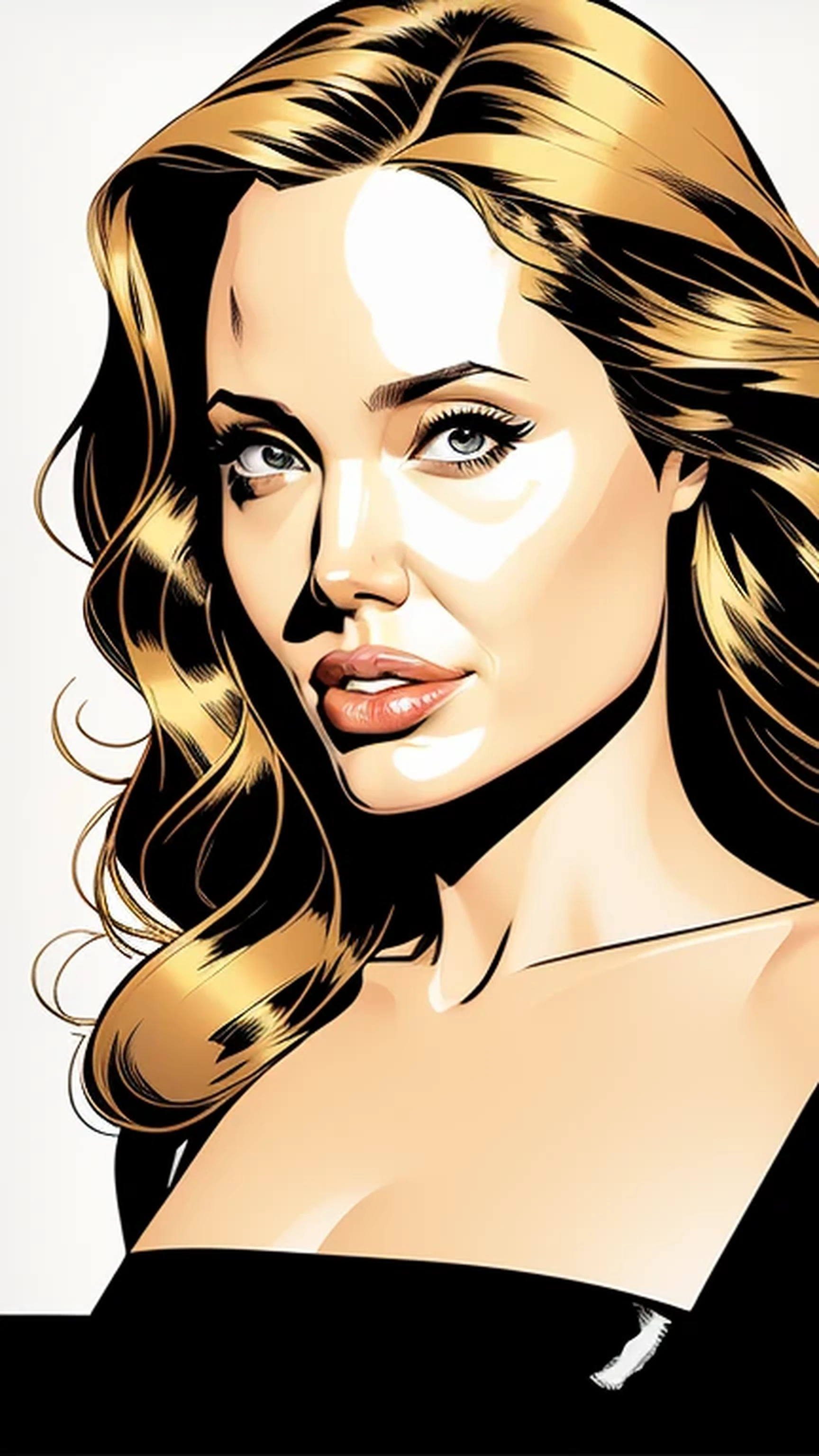 Bust Angelina Jolie digital sketch face portrait, ochre color ink, Cinematic, Figurative, Minimalism, Under lit, Sean Gordon Murphy, Moebius, Bernie Wrightson, Film noir, Stunningly beautiful