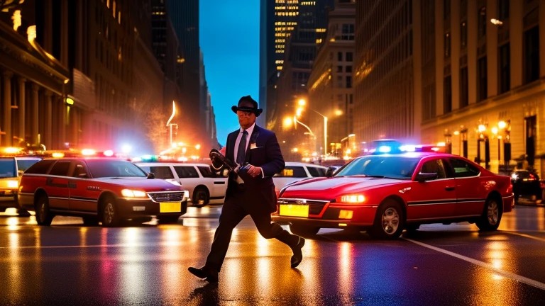 Scene: Bank robbery on Wall Street, loot consists of Bitcoins, 4 robbers, police are alerted.