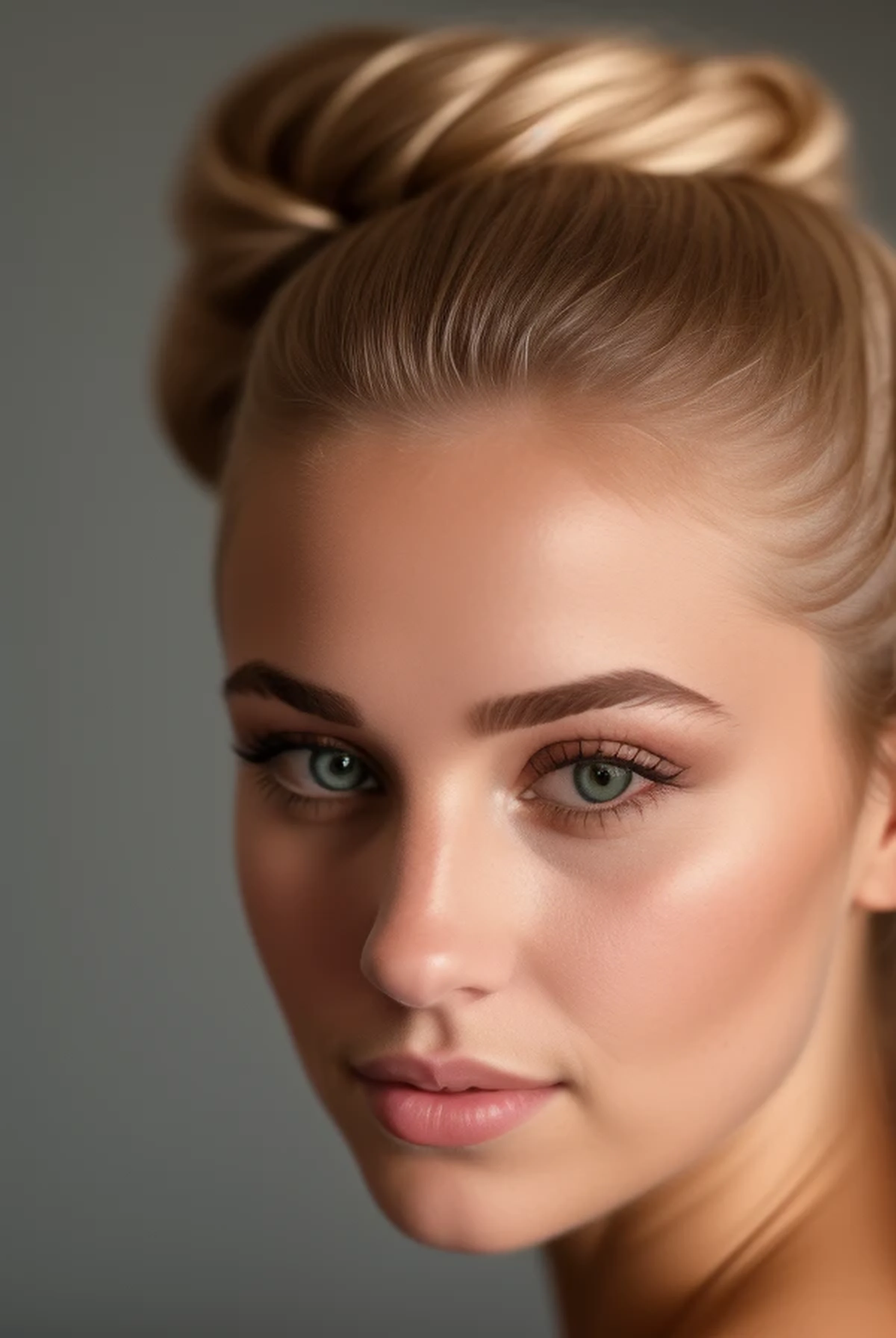 ((Associated Press extremely-high resolution, extremely detailed and in-focus tight close-up)) of a pair of (((highly-detailed and anatomically correct pale blue-gray human female eyes))), with the eyes wearing mascara, black eyeliner, and dark blue eye shadow))). ((The woman's face and hair are all completely in focus, consistent with the camera lens having a fairly high depth of field, like f8 or f9)). The image includes the eyebrows, surrounding skin, nose and mouth -- all with the same level of anatomical detail as the eyes -- and we can see ((((the hair color is Nordic-blonde, and that the woman is in her 20s, and wearing her hair in a ponytail))). Facially, she's a mix of (Melanie Laurent 1.3), (Brittany Murphy 1.9), (Elizabeth Turner 1.8), (Ellana Bryan 1.4) and (Natalia Dyer 1.9), with (the eyes and nose of Olivia Newton-John 1.9). (((A few tiny blood vessels are visible near the surface of her skin -- particularly under the eye, where they give the skin a slight bluish cast -- and she has fine lines on her forehead, so her skin isn't perfectly smooth and flawless)))) ((((The level of anatomical detail is on par with a medical reference book: all the details of the iris; the color variations within the iris; the small capillaries found in the white portions of the eye)))), etc. The same goes for the nose -- the hairs within the nostrils are present, if mainly in shadow -- as well as the pores, skin texture, and other distinguishing features; and for the lips and teeth. ((The teeth are not a perfect white, nor perfectly straight, but resemble the teeth belonging to the average person: some small variation in straightness and size, and some slight yellowing or stains from coffee and tea.)) (((She is smiling -- not a big, wide smile, but just a slight grin, with her dimples just starting to appear, and the lips parted slightly so we can glimpse some of the characteristics of her top-row front incisors. No tooth is completely visible))).