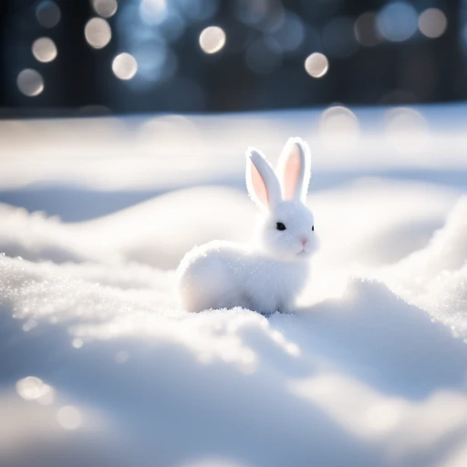 small snow white bunny in a snowy valley...