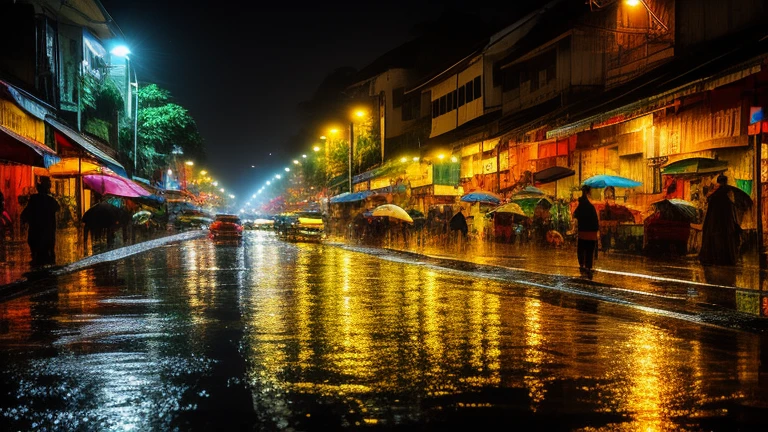 yangon art, street night, rain, car