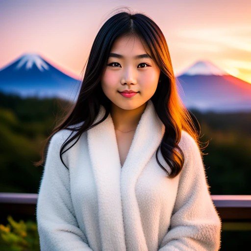 Beautiful young Japanese girl wearing nothingwith Mt. Fuji in the background