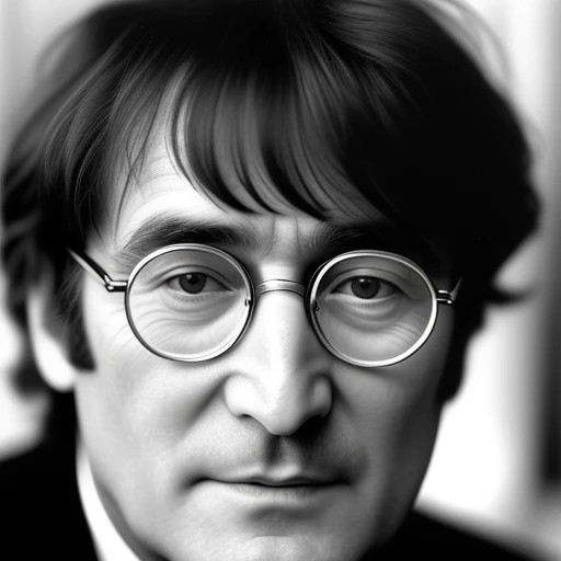 John Lennon in the age of 90 years old, close up photo portrait