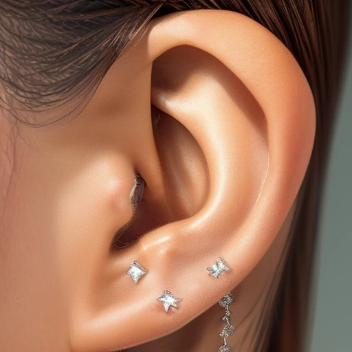 Human Body Ears ((detailed ears)), ((feminine ears)), ((shapely ears)), ((diamond stud earrings)), ((impressive ears)), ((single ear view)), (((zoomed in on ears : 1.75))), ((detailed background)), highest resolution, highest quality, 64k, sharp focus, 3d,