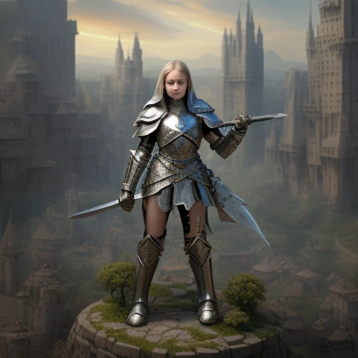 masterpiece,best quality,1girl, solo, armor,full body,holding sword,mini\(ttp\),city, miniature, landscape, isometric,